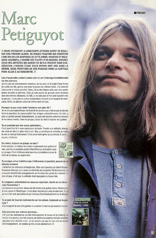 - Photo report and publication about the French singer: Marc Petiguyot in the French magazine specialized about music: "Best". 06/1999. HERE