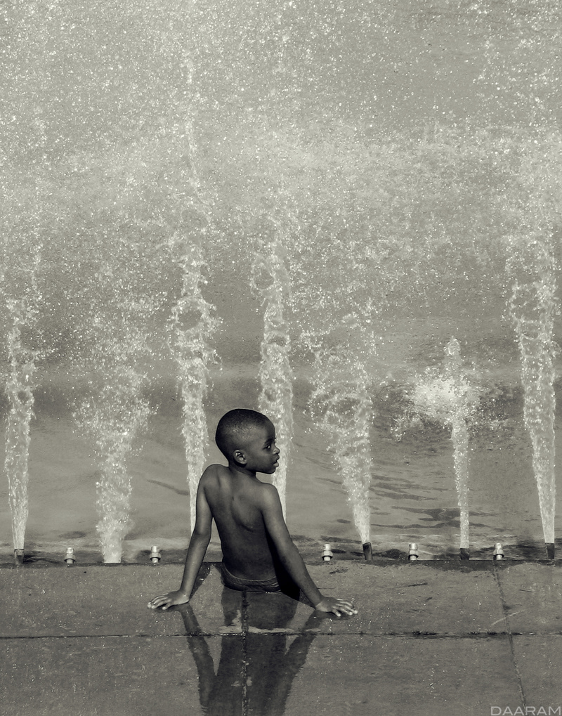 Playing at the fountain: Kid playing at the Trocadéro fountains. Paris. 09/2006