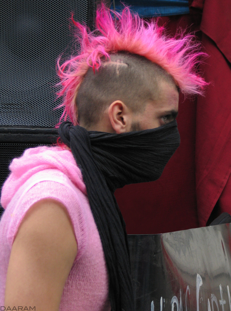 Pink Punk: Young man with a pink mohawk. Gay Pride Paris. 06/2006
