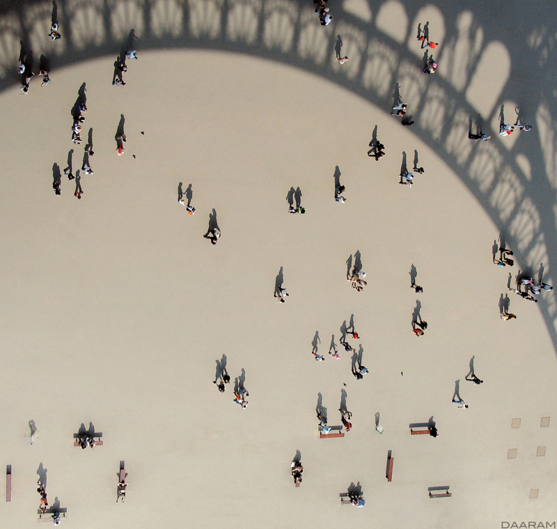 Living Shadows: Seen from the Eiffel Tower, tourists passing under. Paris. 04/2007