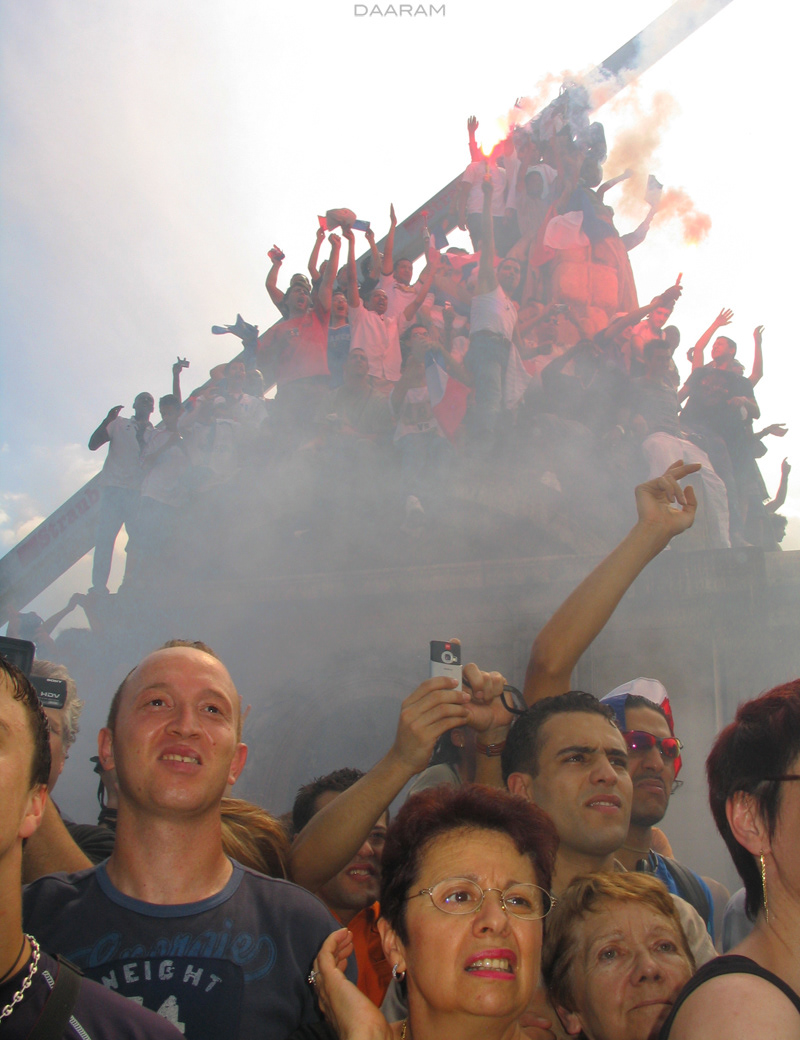 Dieux du stade: Supporters welcoming the French football team after the World championship. Paris. 07/2006